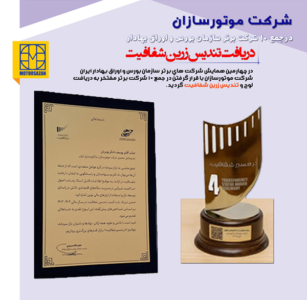 در چهارمین همایش برترین های بازار سرمایه ، شرکت موتورسازان تراکتورسازی ایران مفتخر به دربافت تندیس شفافیت گردید.